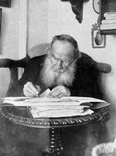 Затем возникает "перелом" в мировоззрении писателя — в трактатах он критикует церковь (но не христианство), критикует государство, призывает отказаться от частной собственности и почему-то (после тринадцати-то детей!) начинает проповедовать воздержание, бросает курить и пить, начинает одеваться очень просто и становится тем самым старцем с седой бородой и плугом в руках, каким его знают школьники. Возникло целое религиозно-нравственное течение - толстовство. А самого Толстого от греха подальше предали анафеме, и поэтому до сих пор на его могиле нет креста.
