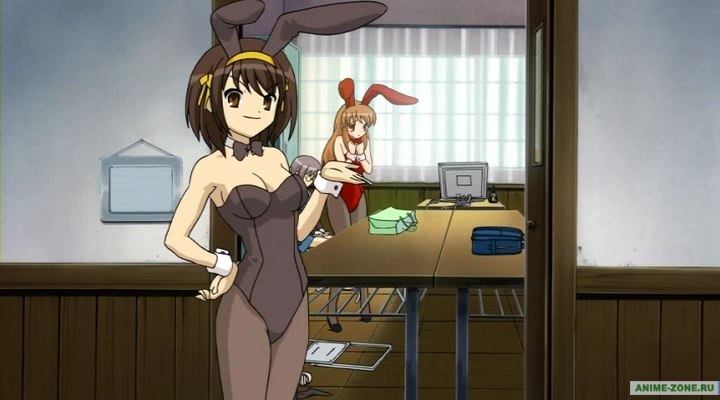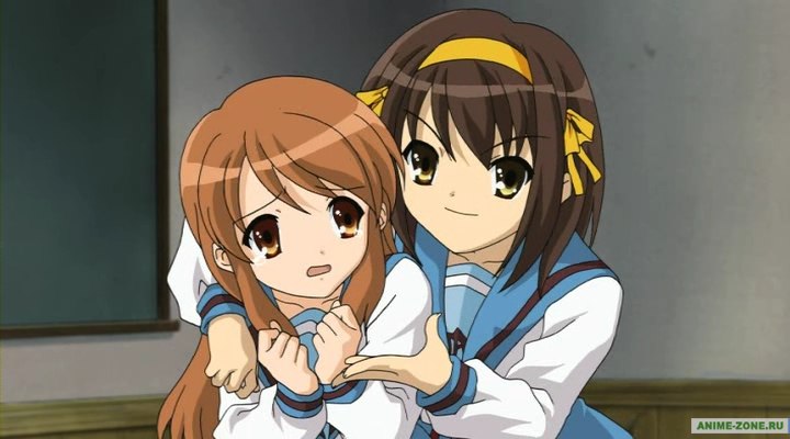 Ближе к делу. Есть девочка, которую зовут, вы не поверите, Судзумия Харухи. Она создает "Команду SOS", что в переводе на обывательский звучит как "Команда Харухи Судзумии, от которой Обалдеет этот Скучный мир". Девочка ищет инопланетян, экстрасенсов и прочие прелести бытия. Если я сейчас еще что-то добавлю, то просто сдам все, ради чего стоит смотреть первые пять серий. Кстати, первый пять серий в этом аниме очень показательные. Как правило, люди, посмотревшие их, делятся на две категории. Первая – это те, которым они не понравились, зато потом весь сериал они смотрели с восторгом, и вторая - это те, кому первые пять серий понравились очень, зато потом всю дорогу ни сюжет, ни само аниме не оправдывало их ожиданий. А я вот думаю, что завышенные ожидания – это зло. Это то же самое, что сидеть, пить кофе, и обижаться на него, что он - не чай. Не надо ожидать от кофе, что он будет чаем, и все будет хорошо. Опять из меня посыпались аллегории. Давайте, я вам лучше картинки покажу.