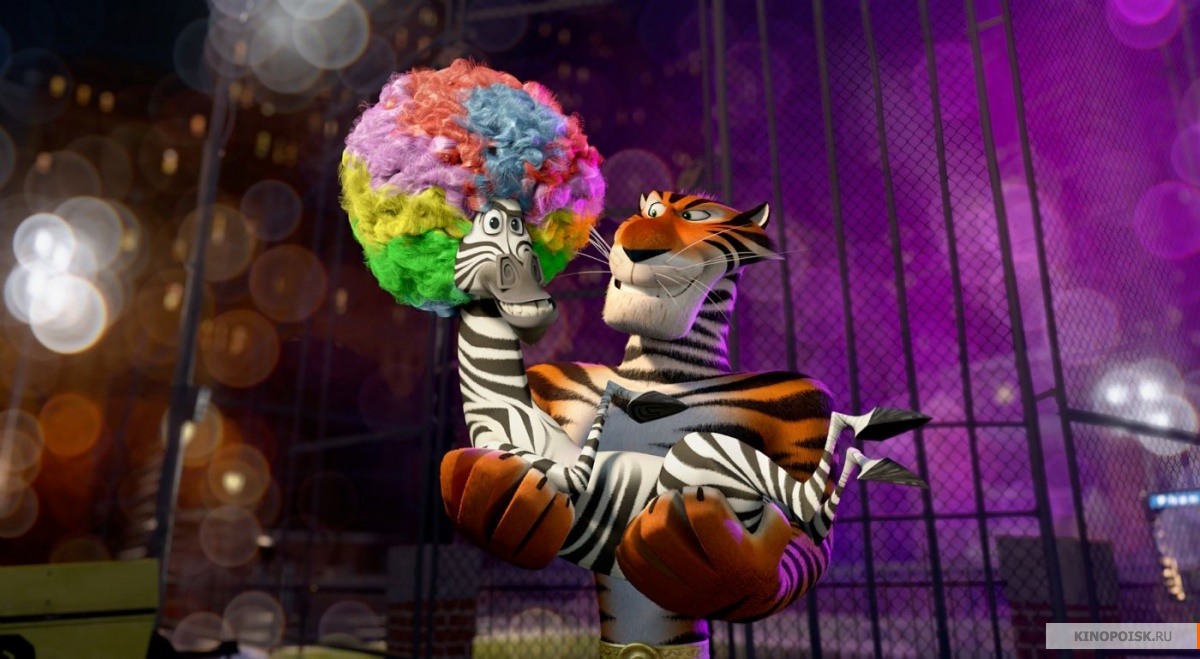 … Честно говоря, так и осталось непонятно корреспонденту MORSa, почему бродячему зверинцу не сидится на природе-свободе под пальмами. Однако факт остается фактом – с подачи напуганного одинокой БЕЗДОМНОЙ старостью льва, вся неугомонная толпа животин буквально смывается из Африки – на поиски родных клеток. И по дороге к ним громит на пути все, что только попадается, срывает нехилый куш в казино и даже примыкает к одной крайне неудачливой цирковой труппе… Однако, обо всем по порядку.