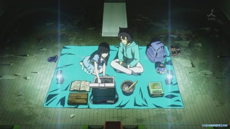 Ну герой и он и положительный хотя и двинутый богохульник и любитель мертвяков. С помощью доброй книжки Тихиро решает испытать воскрешение на своем недавно умершем коте. Во время работы над зельем, он знакомится с главной героиней, Рэей Санкой, которая, из-за проблем в семье, мечтает начать новую жизнь. Когда работы над зельем завершены, Рэа пытается отравиться им. Хотя зелье и не убивает её, вскоре Рэа падает со скалы и разбивается насмерть. После этого, благодаря выпитому зелью, она воскресает как зомби и селится в доме Тихиро. Ну в общем главный герой безответно зачищает зомбачку от от безумного отца и разложения проводя темные ритуалы с ядовитыми растениями. Прямо веселый добрый некромант как из песни Король и Шут. Ну и наконец то там есть один адекватный персонаж его сестра которая находится в ужасе от всего этого.
