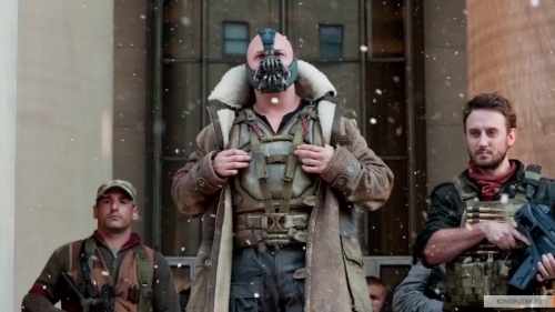Бэйн ( Том Харди), в отличие от своего предшественника, сам не шутит, и наличием чувства юмора у своих жертв вовсе не интересуется. Просто методично сворачивает им шеи направо и налево. Да так расходится, что улицы города Готем под конец превращаются буквально в кровавое месиво. Мясорубка работает интенсивно и исключительно под ритмичные удары дирижерской палочки гения саундтреков Ханса Циммера. И эти удары постепенно, сливаясь в едином реве со взрывами пехотных мин и выстрелами повстанцев, становятся ударами твоего собственного сердца. Не без участия эффекта "долби сораунд", конечно. Впрочем, и о "картинке" имеет смысл сказать особо – потому что ваш покорный слуга смотрел фильм в формате IMAX.