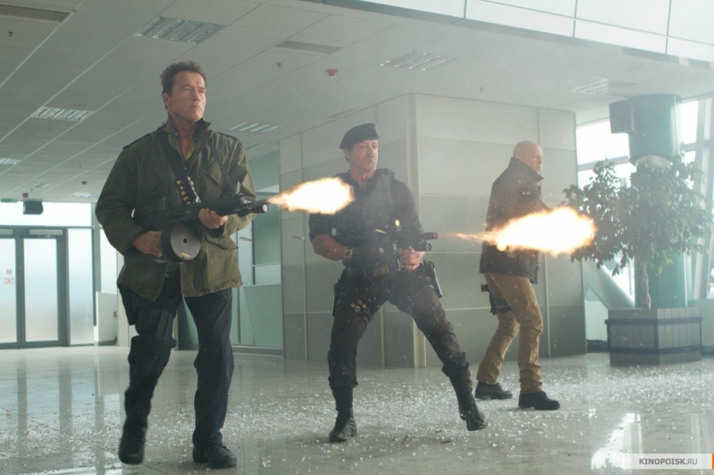 Конечно, фильм состоит из бесконечной вереницы самоцитат, но это, собственно, то, ради чего все и затевалось. Какой к черту Черч, Трент, Букер или Росс. Это Уиллис, Шварценеггер, Норрис и Сталлоне. Им не нужны маски супергероев, их лица и есть эти маски. Это герои эпосов, Гильгамеш, Кухулин и Гайавата, мы их ждали, и мы их получили со всей эпической атрибутикой и главным ее признаком - нарочитым преувеличением. Это главное в народных сказках и боевиках 80-х: если плутоний - то пять тонн, если встречаются враги - то их целые армии, если бой - то "где рукой махнет, там улочка, где ногой – там переулочек". Не нужно ждать логики и тонких сюжетных ходов от древнегреческих мифов и "Старшей Эдды". Герои для того, чтобы совершать подвиги. Так что от актеров нужно было играть самих себя, что они и сделали, причем вовсю глумясь над своими кинообразами. Получился весьма задорный капустник, где каждая экшен-сцена сопровождается каким-нибудь гэгом вроде легендарного "Iamback" у Железного Арни, сбивания вертолета мотоциклом специально для Уиллиса, файтинга Лундгрена и Ван Дамма, где они поменялись ролями со времен "Универсального солдата".