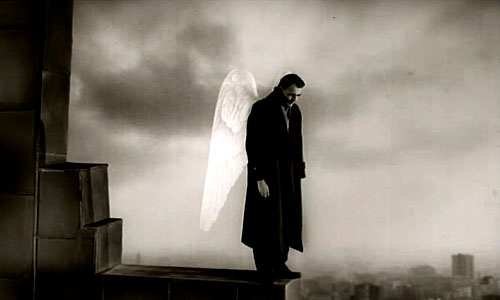 Но, слава богу, в фильмах удалось найти вполне адекватных ангелов – добрых и всепонимающих. Именно такие парят в "Небе над Берлином". Фильм посвящен, в частности, Андрею Тарковскому и показывает ангелов, как существ в длинных плащах – они незримо обитают среди людей, любят собираться в библиотеке или смотреть на город с высоких старинных зданий. Они слушают людские мысли, снимают боль, утешают, возвращают веру в себя. Ангелы видят и чувствуют мир по-особому – черно-белым, чистым, абсолютно духовным, без обычных человеческих ощущений. В ангельском мире ничего не происходит – в нем не живут, а пребывают, фильм тянется сонно и неспешно до определенного момента.