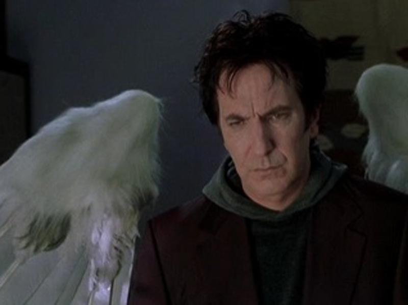 Именно Метатрон, по фильму, давным-давно сообщил 12-летнему Иисусу о его миссии. Ангел Метатрон в исполнении Рикмана – очень симпатичный персонаж, не лишенный жалости и сострадания к людям, при этом немного циничный, он неукоснительно соблюдает волю Бога и относится к нему (или к ней), как хорошо знакомому, но чудаковатому другу.