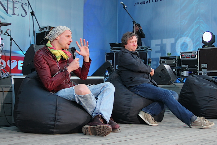 Когда же настало время Q&A сессии, ведущей которой выступил известный кинокритик Антон Долин, «отдуваться» за так и не появившихся иностранных гостей пришлось нашему актеру Юрию Колокольникову, сыгравшему в сериале роль каннибала Стира, предводителя клана Одичалых. Колокольников пошутил, что остальных актеров он съел, поэтому они так и не смогли доехать до столицы.