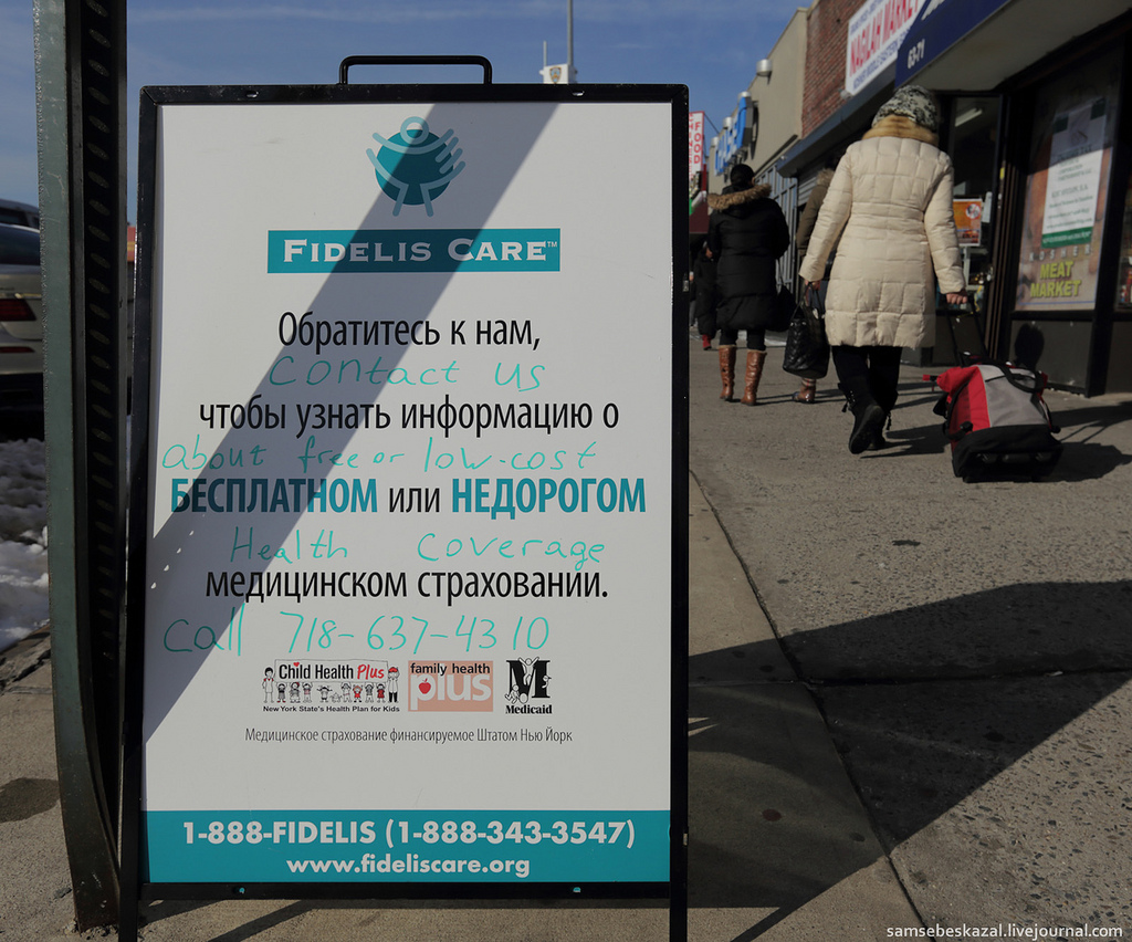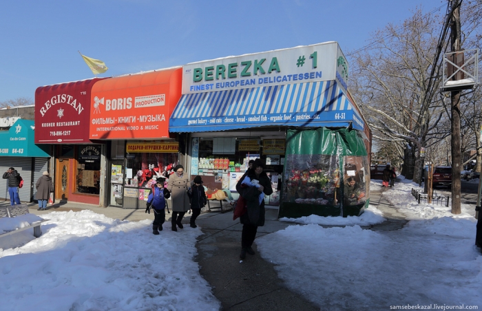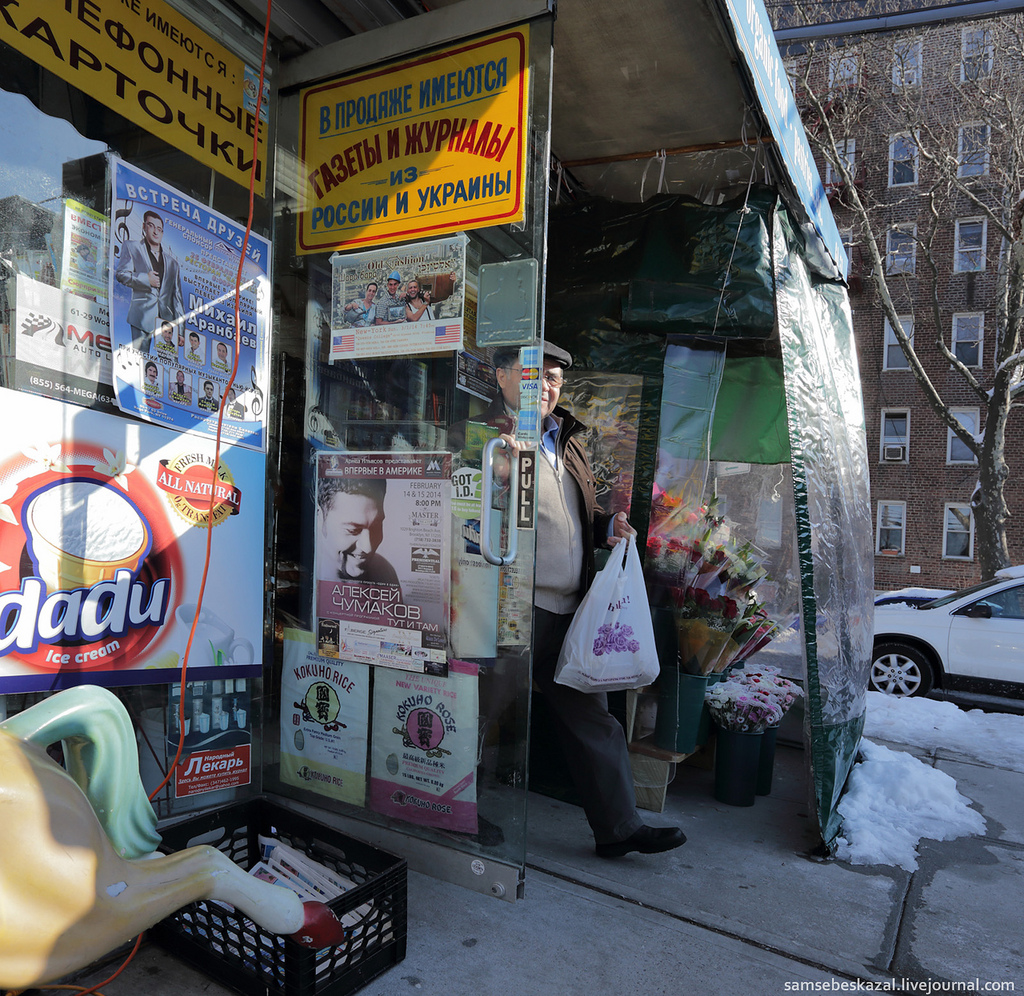 У нас есть русские магазины, детские сады, фотоателье и парикмахерские. Есть русское бюро путешествий. Есть русские адвокаты, писатели, врачи и торговцы недвижимостью. Есть русские гангстеры, сумасшедшие и проститутки. Есть даже русский слепой музыкант.