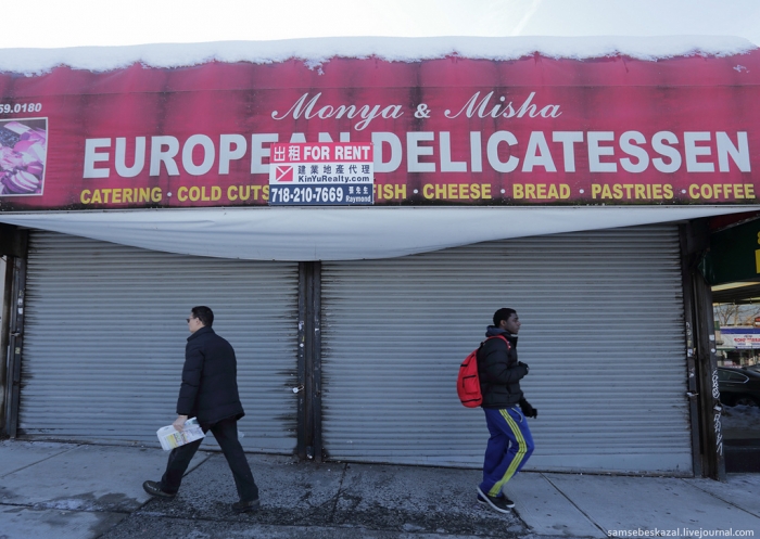 Парикмахерская стала итальянской лавкой с моцареллой и колбасами, лавка стала борделем с затемненными стеклами и мутной вывеской, бордель стал русским магазином Березка #1. Такая нешуточная трансформация за полвека, но никто уже и не помнит, что здесь было вчера. От этого Березка кажется вечной.