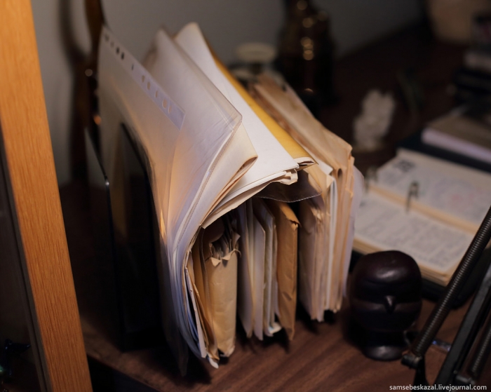 Еще один кусочек застывшей истории - портфель Довлатова. Внутри до сих пор лежат вещи, которые он туда положил в далеком 1990 году.