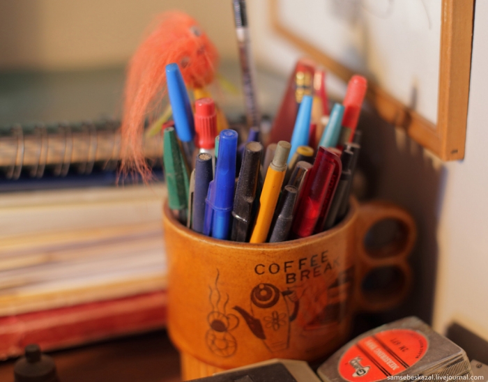 Ручки, которыми пользовался Довлатов. Он все писал сначала от руки, а потом перепечатывал на машинке. Рукописные листы выбрасывал. В Нью-Йорке Довлатову очень нравилось, что можно сделать копию на каждом углу и нет необходимости пользоваться копиркой.