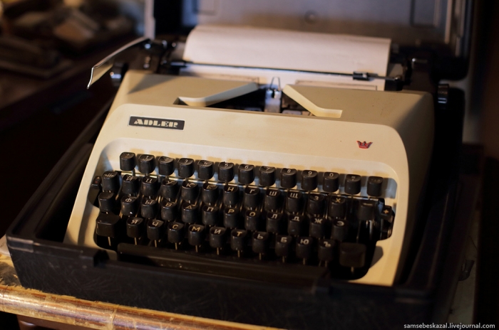 У Довлатова было две книги, в названиях которых фигурируют печатные машинки: ленинградская "Соло на ундервуде" и нью-йоркская - "Соло на IBM". Это художественный прием. Работал он совершенно на других машинках. Первой у него была старая машинка с огромной кареткой, которую прозвали "Мерлин Монро". Ее марку уже никто не помнит. К сожалению, Мерлин упала со стола и разбилась. На следующий день отец Довлатова - Донат отдал ему свою машинку. Это была Олимпия, которой Довлатов пользовался вплоть до своего отъезда из Ленинграда. Ундервуд у него тоже был, но печатала на нем жена Елена. Олимпия не пережила переезда и погибла в Вене в руках Юза Алешковского. Следующей машинкой стала Адлер, которую Довлатов купил в Нью-Йорке у сына сослуживицы жены, через полгода после приезда. Она была почти новой. Именно она на фото. Именно на ней написаны все его американские произведения.