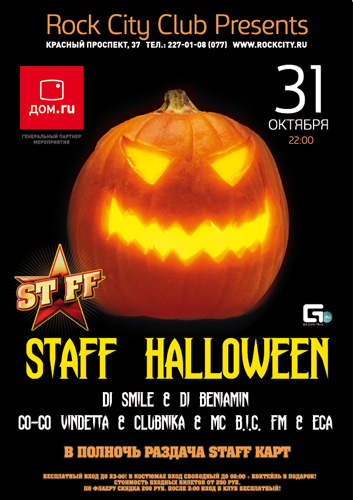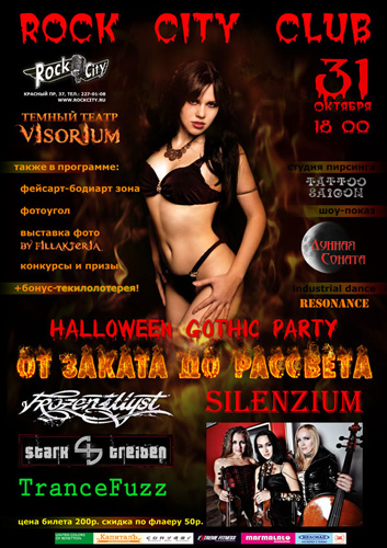 И, наконец, 31 октября в клубе подготовили сразу две темные вечеринки. HALLOWEEN GOTHIC PARTY "От Заката до Рассвета" и STAFF PARTY HALLOWEEN! Развлечения на любой вкус в полном смысле этого слова. Только если вечеринка "От заката до рассвета" понравится погруженным в готическую культуру, тем, кто хочет всерьез поиграть в пафосных вампиров и сексуальных упыриц, то staff - party – это обычная, хотя и очень зажигательная вечеринка из разряда "только для взрослых", оформленная в хэллоуиновском антураже.